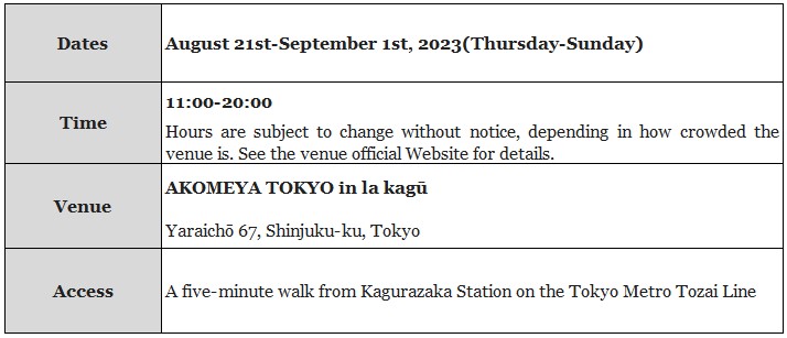 AKOMEYA TOKYO in la kagū Tokyo Teshigoto (Traditional Craft) Exhibition Overview Click Here for Event Description