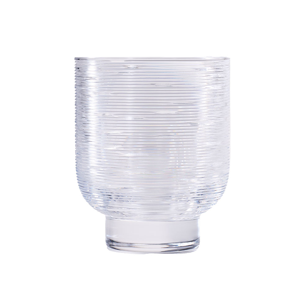By introducing horizontal cuts never before used in Edo Kiriko, this design achieves both the beauty of reflected light and a comfortable, non-slip grip. With its simple composition, the overlapping stripes at the front and back create a layered brilliance with greater depth than conventional Edo Kiriko. Showcasing the artisan’s skill and sensitivity, each piece is meticulously crafted with only delicate horizontal cuts, expressing the texture of the traditional Japanese washi paper used in lanterns. This represents “a new form of Edo Kiriko,” reinterpreted Edo Kiriko for the modern era.