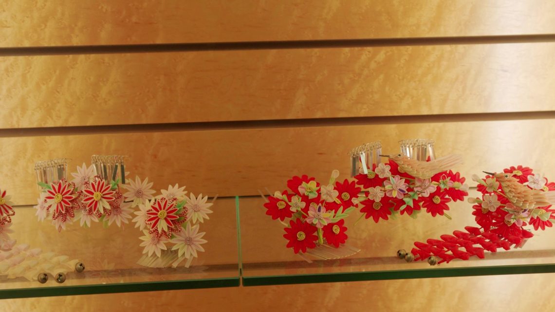 Most of his orders come from people who wish to coordinate the kanzashi with kimonos, and people who wish to wear them at events and ceremonies. Sometimes, he even receives orders from Maiko geishas who claim that all of the stores in Kyoto stock similar items and they want something that is different to what other people are wearing. And, approximately once every ten years, he receives an order from somebody who wishes to coordinate a kanzashi with western clothes.