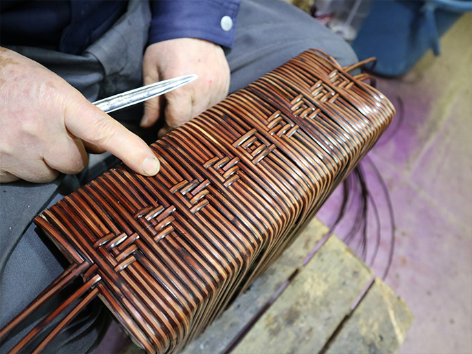 The technique that rattan can make such as "rolling" or "trimming" is not applying the feature of bamboo. For example, rattan is used also in the "bow of Shigeto" carried by medieval warlords, the handle of a spear, a whistle, a shakuhachi(flute) and others.