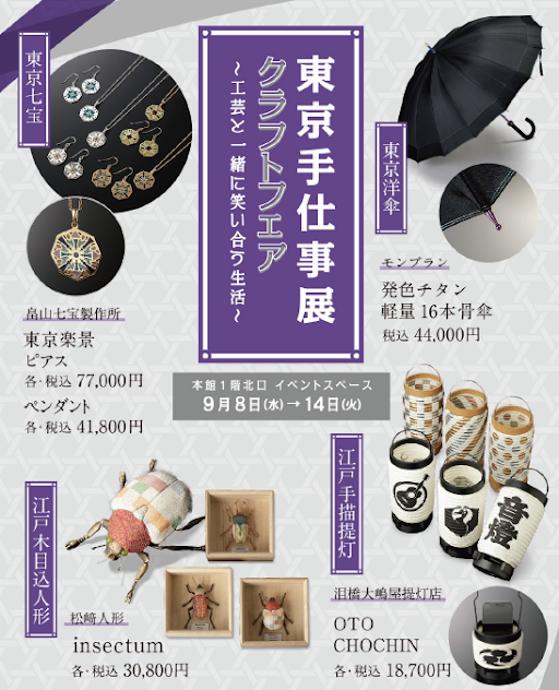 松坂屋上野店本館1階北口イベントスペースにて「東京手仕事」商品の展示販売を実施いたします。「東京手仕事」プロジェクトが東京の伝統工芸品とその進化を発信します。