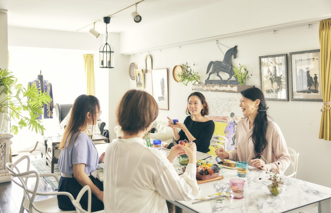 その料理と言葉、そして伝統工芸品の数々に、おなかも心も満たされ、ホームパーティーがお開きとなるころには、みんなが自然な笑顔に。それぞれが明日の元気をもらい、おおつきさんの隠れ家レストランを後にしたのでした。
