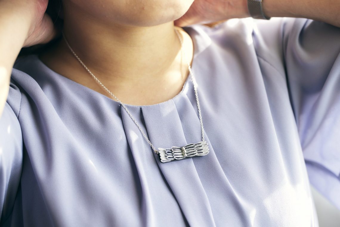 「東京手仕事」に選ばれたものの中には、匠の技が光るアクセサリーもあるとのことで、特別に試着させてもらえることに。かんざしなどに使われるつまみ細工を取り入れた「HARENO Accessories」、東京の名所をデザインした七宝焼アクセサリー「東京楽景 Tokyo Rakkei」、鍛金と彫金の技術を駆使した「tui(ツイ)」、スパークリングワインの空き瓶から生まれたサステナブルな江戸切子のバングル「GLASS-LAB NEW PRODUCT"WA"」――。