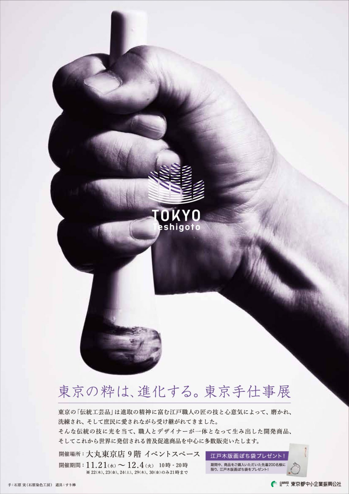 このたび、「東京手仕事」プロジェクトでは、大丸東京店で「東京の粋は、進化する。東京手仕事展」を開催いたします。期間中は職人による実演も行います。また、期間中商品をご購入いただいた先着200名様に、江戸木版画ぽち袋をプレゼントいたします。大丸東京店へは初出店ですので、ぜひ皆様お越しください。