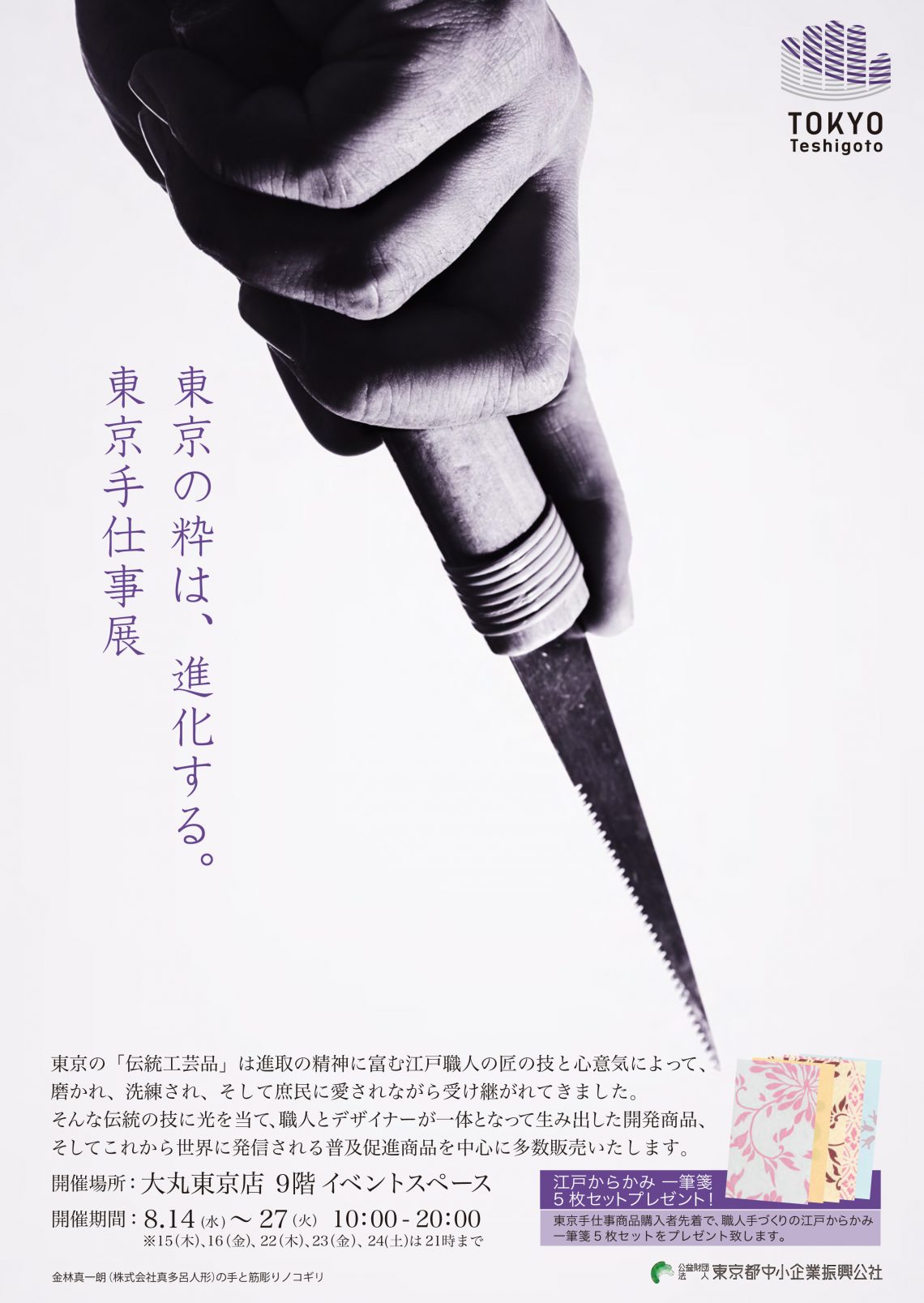 令和元年8月14日(水)から27日(火)まで、大丸東京店9階にて、東京の職人とデザイナーのコラボレーション商品を中心とした期間限定販売会「東京の粋は、進化する。東京手仕事展」を開催します。