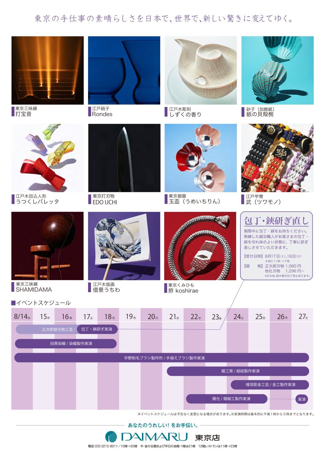 ①正次郎鋏刃物工芸(包丁、鋏研ぎ直し):8/17(土)、18(日)