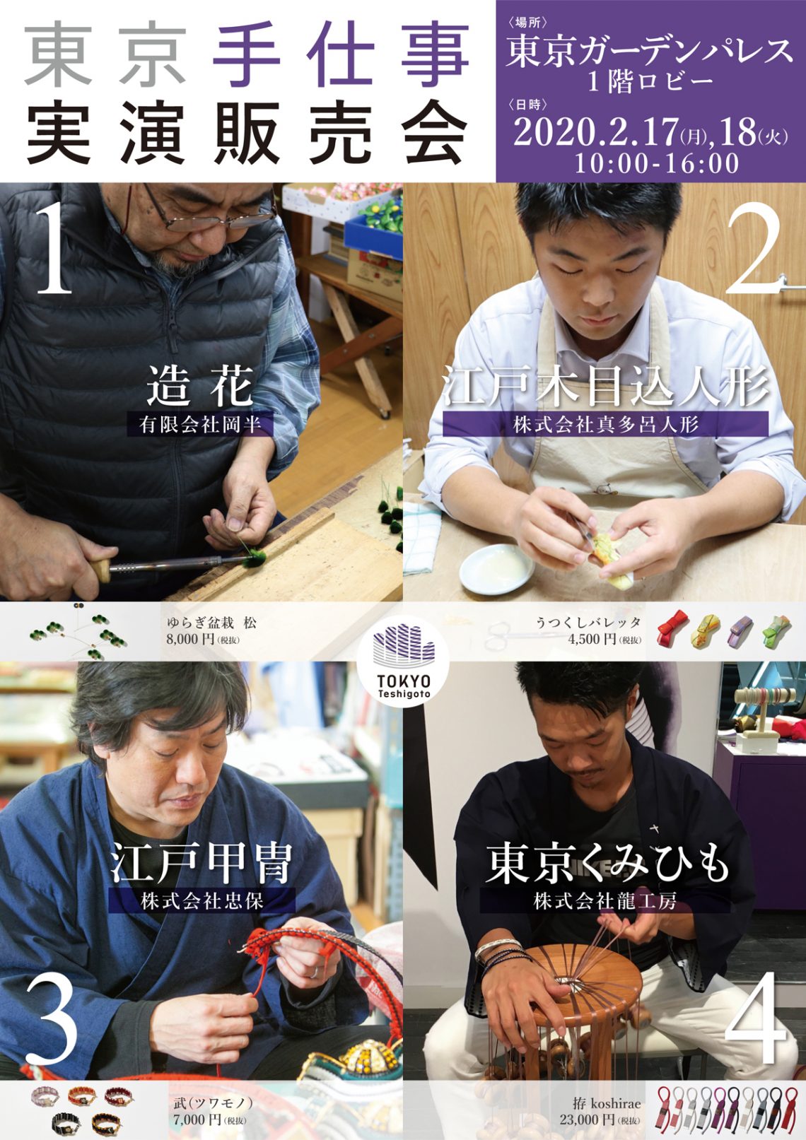 令和2年2月17日(月)、18日(火)の二日間、文京区湯島にある「ホテル東京ガーデンパレス」1階ロビーにて、東京の職人による手作り商品を中心とした期間限定販売会を実施します。是非お越しください。皆さまのご来店を心よりお待ちしております。