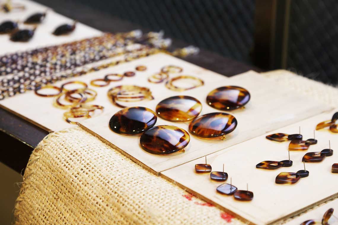 江戸末期のべっ甲工房「伊勢元」にルーツをもつ、ベッ甲イソガイ。べっ甲は、簪(かんざし)や櫛などの高級な和装小物として古くから愛用されてきました。このべっ甲をジュエリーや生活雑貨などにも幅広く展開し、浅草・亀戸の直販店「ベッ甲イソガイ」で販売、他にもチェーンネックレス、名刺入れなどモダン&スタイリッシュな品揃えでべっ甲の新たな魅力を発信しています。