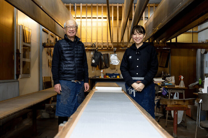 石塚久美子は幼少期から、間近で見ていた祖父や父の染小紋の技術に、いつしか惹かれるようになっていく。本格的に家業に携わったのはおよそ10年前のこと。以来、父であり四代目の幸生氏(経済産業大臣認定 伝統工芸士)の指導のもと、伝統技術を磨き続けてきた。