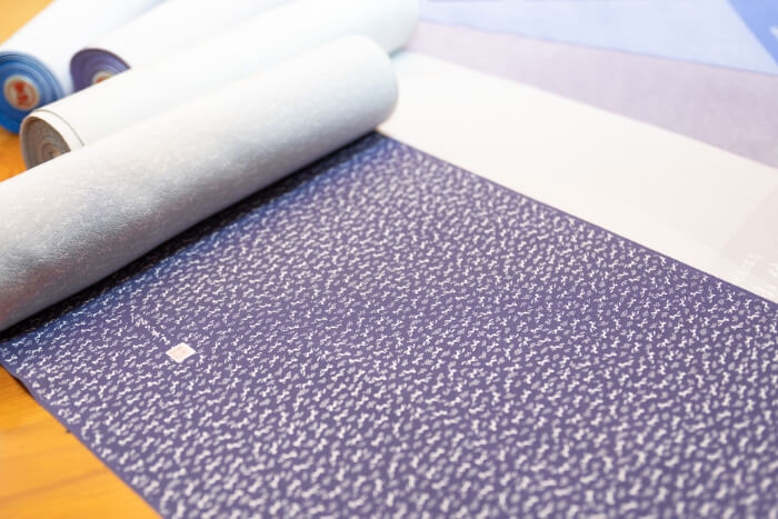 繊細な小紋柄を染めるための伊勢型紙は、今では数が少なくなってしまった三重県の職人によって作られている。幅36cm長さ12mの反物を染め上げるには、伊勢型紙を寸分の狂いもなく繋ぎ合わせていく「星合わせ」という高度な伝統技術を要する。