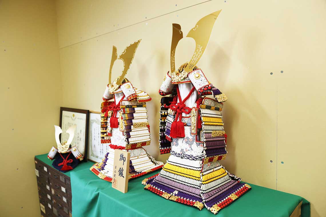 甲人は、創業は明治30年から始まり120余年を迎える老舗企業。現在は5代目となりますが、初代から続く弛まぬ研究と技術の研鑽を怠らず、子どもたちの無病息災、安泰や繁栄の願いとともにその歴史を積み重ねています。武具としての緻密な技法、感性が試されるデザイン手法を織り交ぜ製作されていて、女流甲冑師ならではの普段使いをも考慮した、使い勝手の良い、いつも手元に置いておきたくなるような仕上がりが特徴です。
