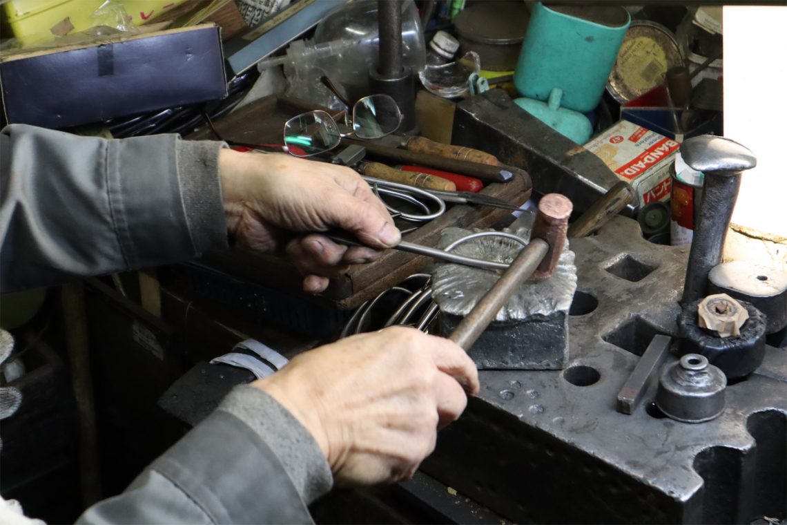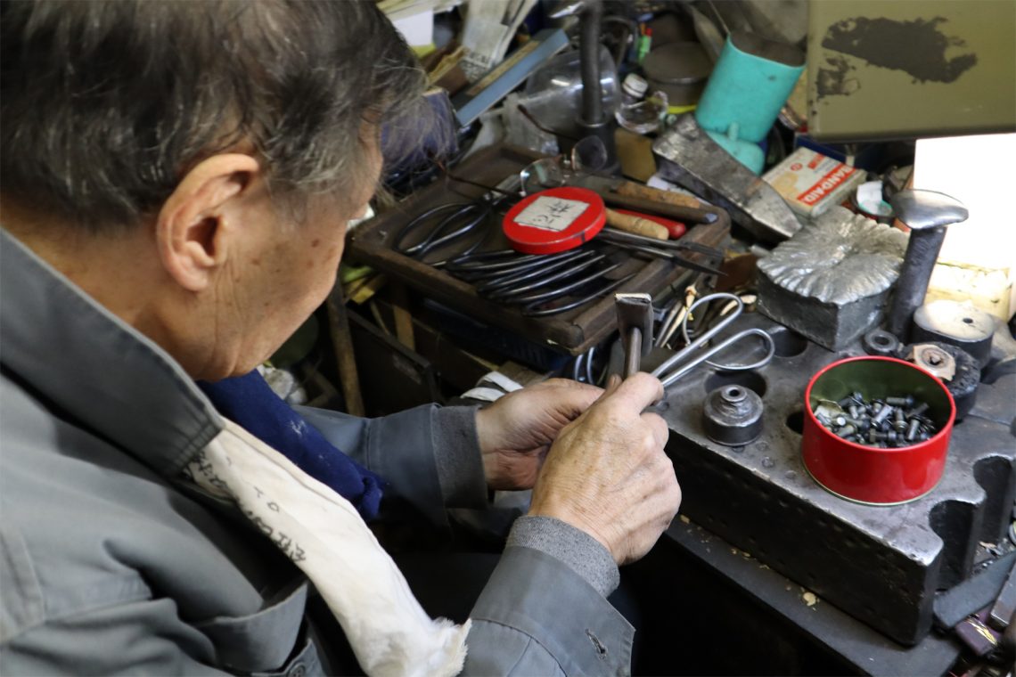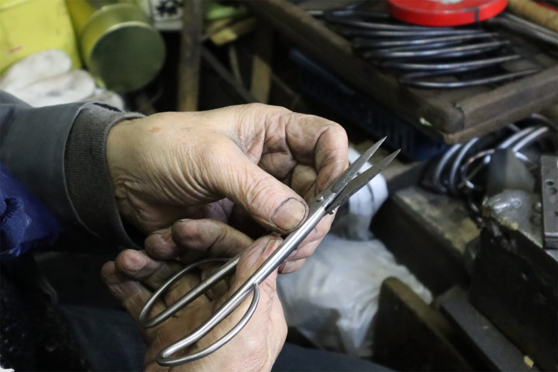 全国の華道家が、完成を待ちわびる鋏がある。賛辞は「刃先に目がついているようだ」「刃先が指先のように使える」など様々だが、どれも鋏に期待していた機能を超越していることへの驚嘆の声に聞こえる。そして、佇まいの美しさ。文机の上に置かれているだけで、その場の空気が凜とするような姿形をしている。しかし究極の機能美を作り出す川澄巌氏は、いささかの気むずかしさもなく、飄々としたお人柄。「刃物だもの、切れるのは当たり前」と、そんな言葉を気負いも無く口にする。聞けば初代は医療用の鋏である「剪刀(せんとう)」「鉗子(かんし)」などを作っていたが、たまたま近所の華道家からの求めに応じて花鋏を誂えたところから、瞬く間に全国の華道家に評判が広がっていったのだという。また川澄氏は、こうも言う。「私は、手作りって嫌いなんです」。言外には「手作りだから価値があるのではなく、手作りで機械にできない価値を生み出すこと」への矜持がある。気負い無いように見えるが、その陰には探求心と努力の跡が垣間見えてくる。