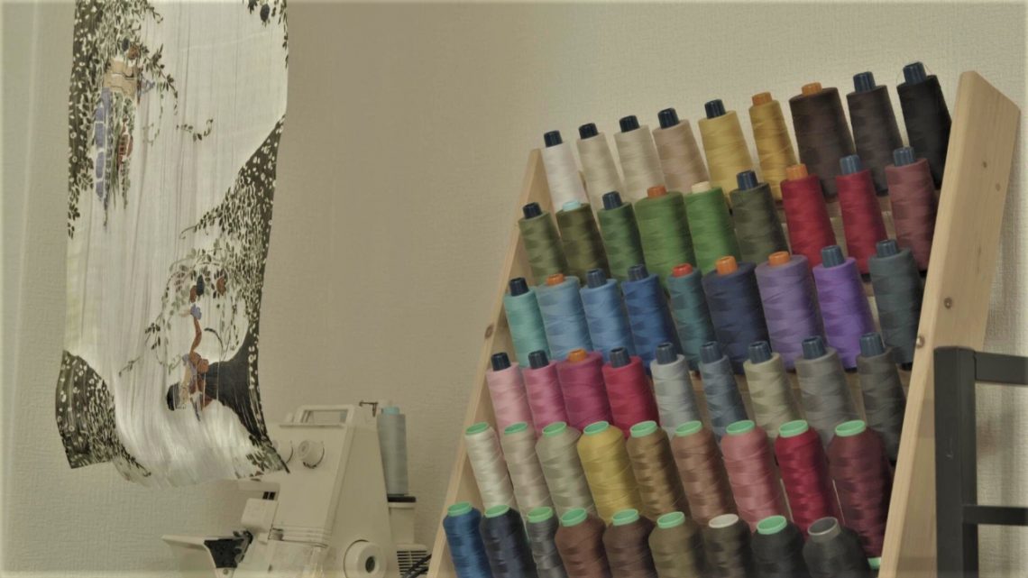 織りあがった生地は、傘の種類ごとに異なるサイズに裁断し、ミシンで縫い合わせて傘の骨に取り付ける。「モンブランといえば、ほぐし織」とまで言われるこの生地は、柄をあわせたり生地のゆがみを避けたりするのが難しく、どんな傘職人でも扱えるわけではない。