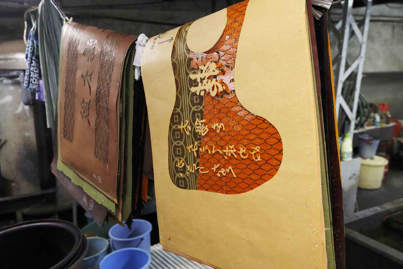 かつては周辺に30数社あった同業者が、今では東京に4社しかないといわれる 「注染」という伝統的な染色方法で浴衣や手拭いを作っています。注染とは 型紙を白生地に張りその生地に防染糊をつけることで、糊のついていないところが染められるという伝統的な型染。注染染めは、裏表同じ色柄に染まり、手作業なため、機械で生産したものに比較してぼかしなどの風合いを感じることができます。