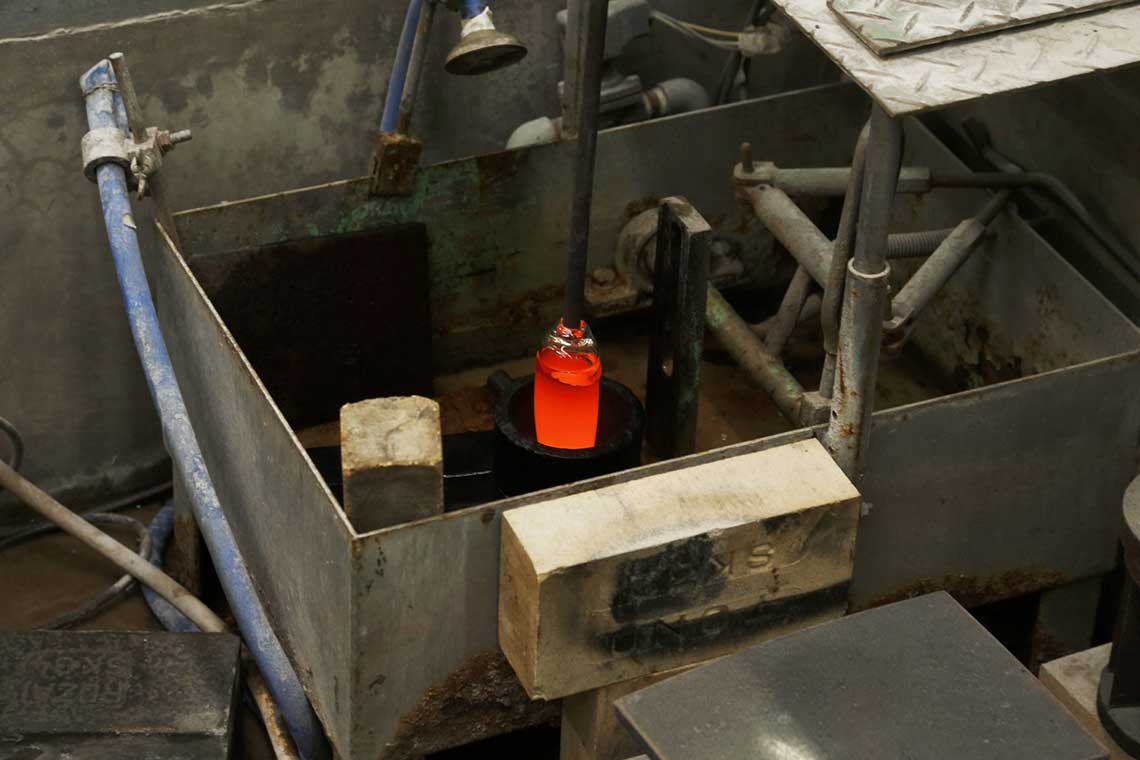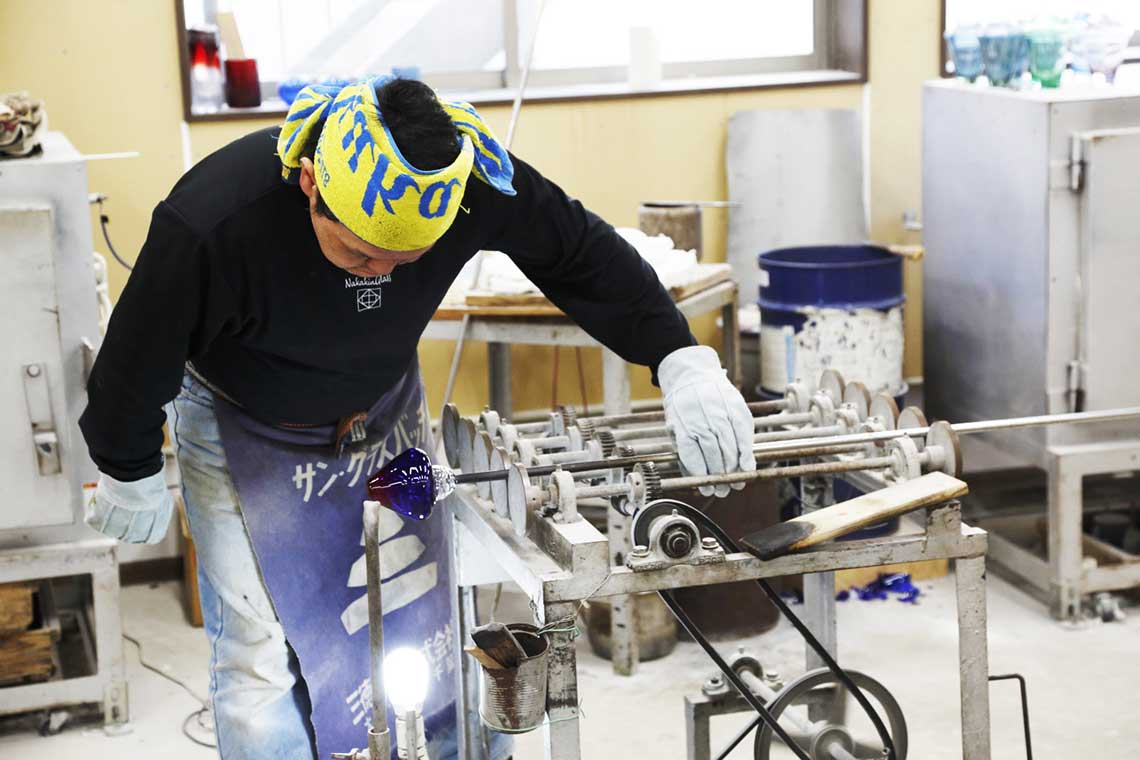 創業者の中村金吾は、中金色被せガラスを美しく製作するための工法である『ポカン工法』を日本で最初に編み出した人物です。外側に薄く色ガラスを吹き、熱した特殊なお窯に入れながら内側に他の色のガラスを吹いて溶着する工法は独特なもので広く利用されました。