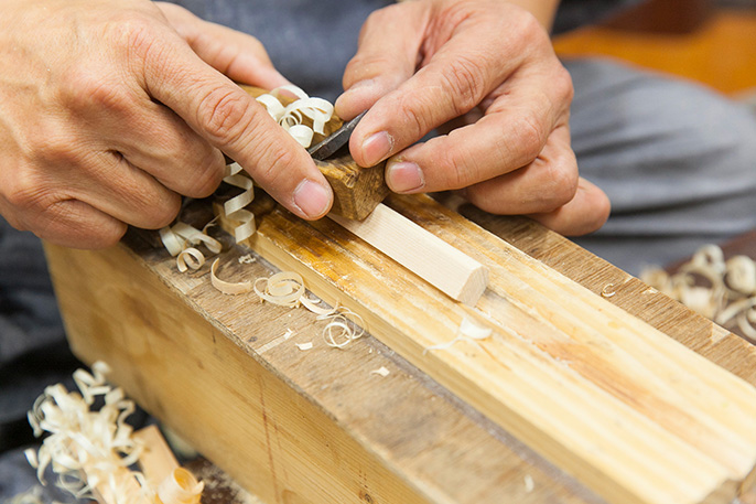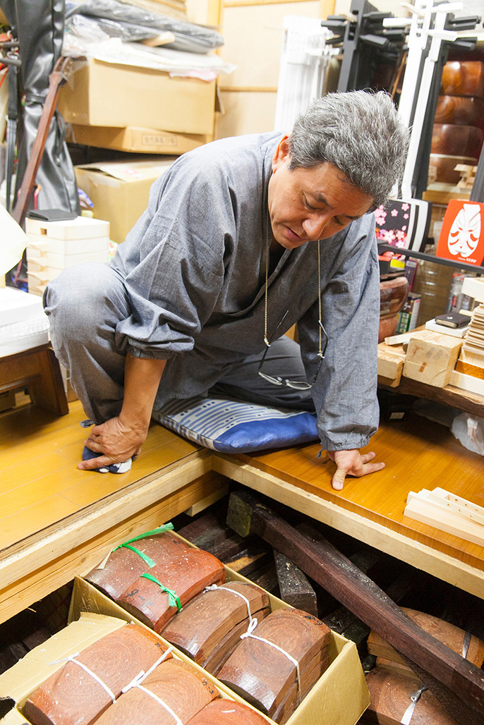 心地良い伴奏に合わせて、一人またはみんなで声合わせ歌う時間の楽しさよ。世界共通語になったカラオケの発明をとっても、 "歌う"ということは日本人にとって日常である。それではカラオケのない時代、どうしていたのか。楽しい宴の余興の時、そして一人口ずさみたい晩など、伴奏は三味線と決まっていた。昭和の小唄ブーム、民謡ブームなどの時には、多くの人が三味線を買い求め、お稽古に勤しんだという。現代の生活では目に触れることも少なくなったが、誰もが三味線を手にしていたという時代があったのだ。「あの輝きをもう一度」と三味線づくりの世界に一人飛び込んだ男、それが「三絃司きくおか」の初代・河野公昭さんだ。世襲の多いこの世界で、ゼロからのスタートは珍しい。しかし逆に、違う世界から飛び込んできたからこそ、常識とされていたことを覆し、新しい道を切り開いた。胴に使う動物皮を合成繊維にしたり、皮を張る際に伝統的に使われてきた道具「木線(きせん)」を独自に開発したり。始めた当初は異端であった改革も、「プロが認めるほどの音質」や「生産効率を高め、普及に一役買う」などの理由から、徐々にスタンダードになりつつある。次に河野さんが狙うのは海外市場。ハワイに旅行すると、お土産にウクレレが欲しくなる。そんな風に、三味線を手にしてもらえないかという発想。河野さんのイノベーションは、まだまだ続く。