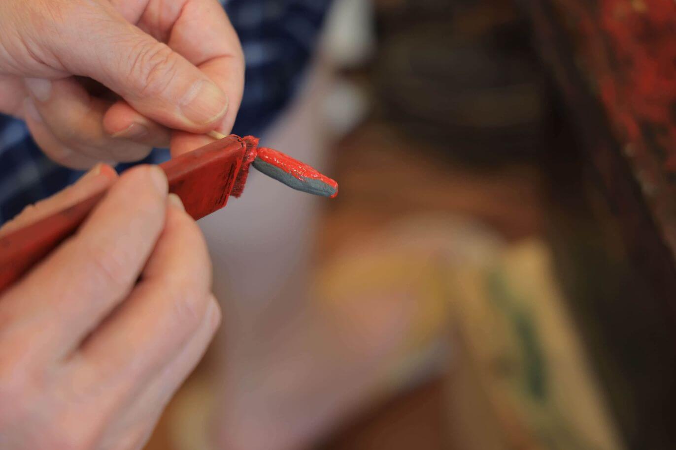 漆塗りの工程は、「下地」、「捨てなか」、「中塗り」、「上塗り」と呼ばれる段階に分かれており、塗り重ねていく。