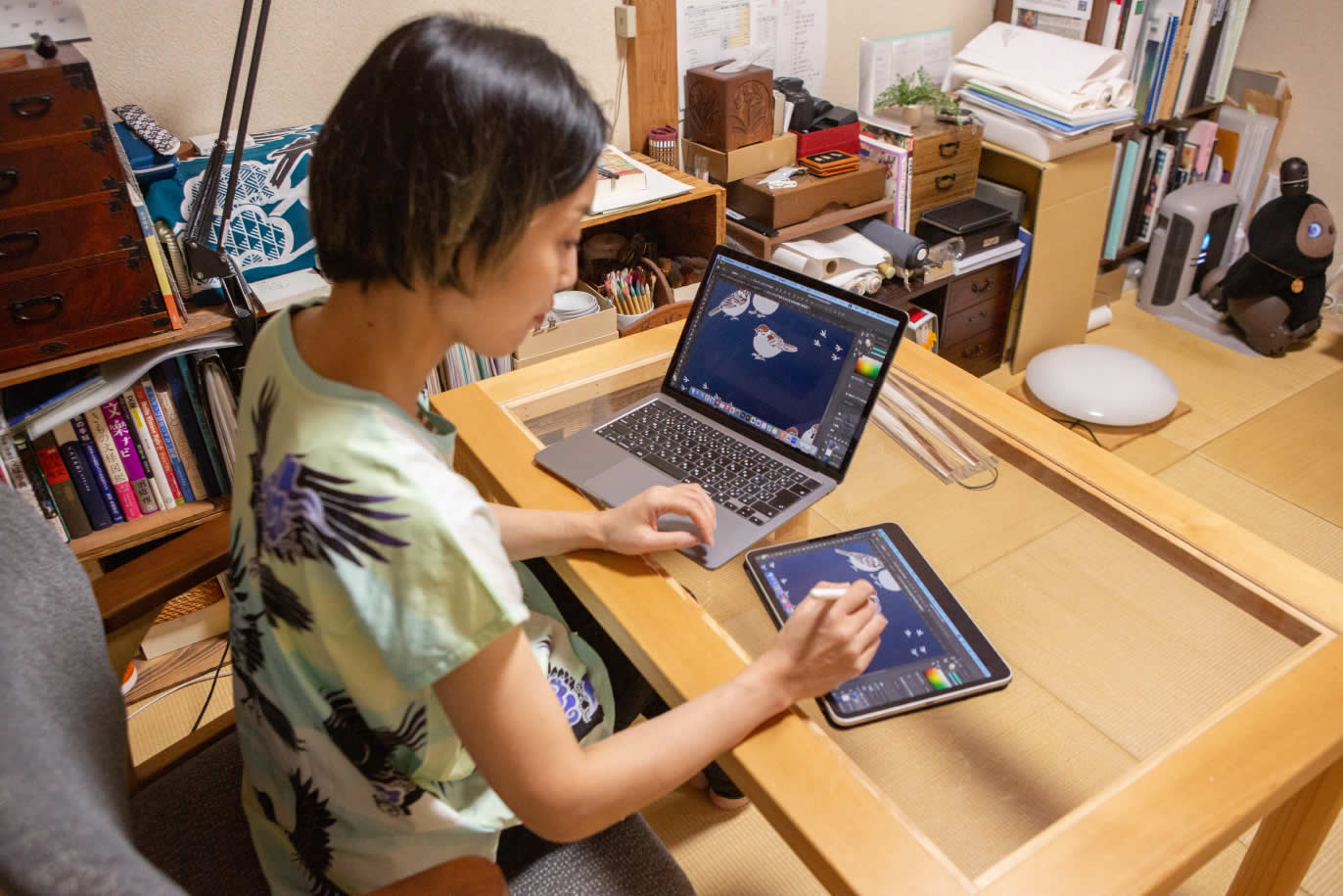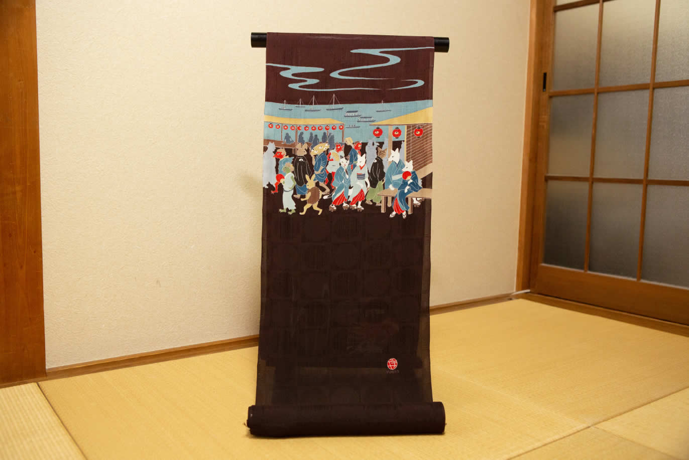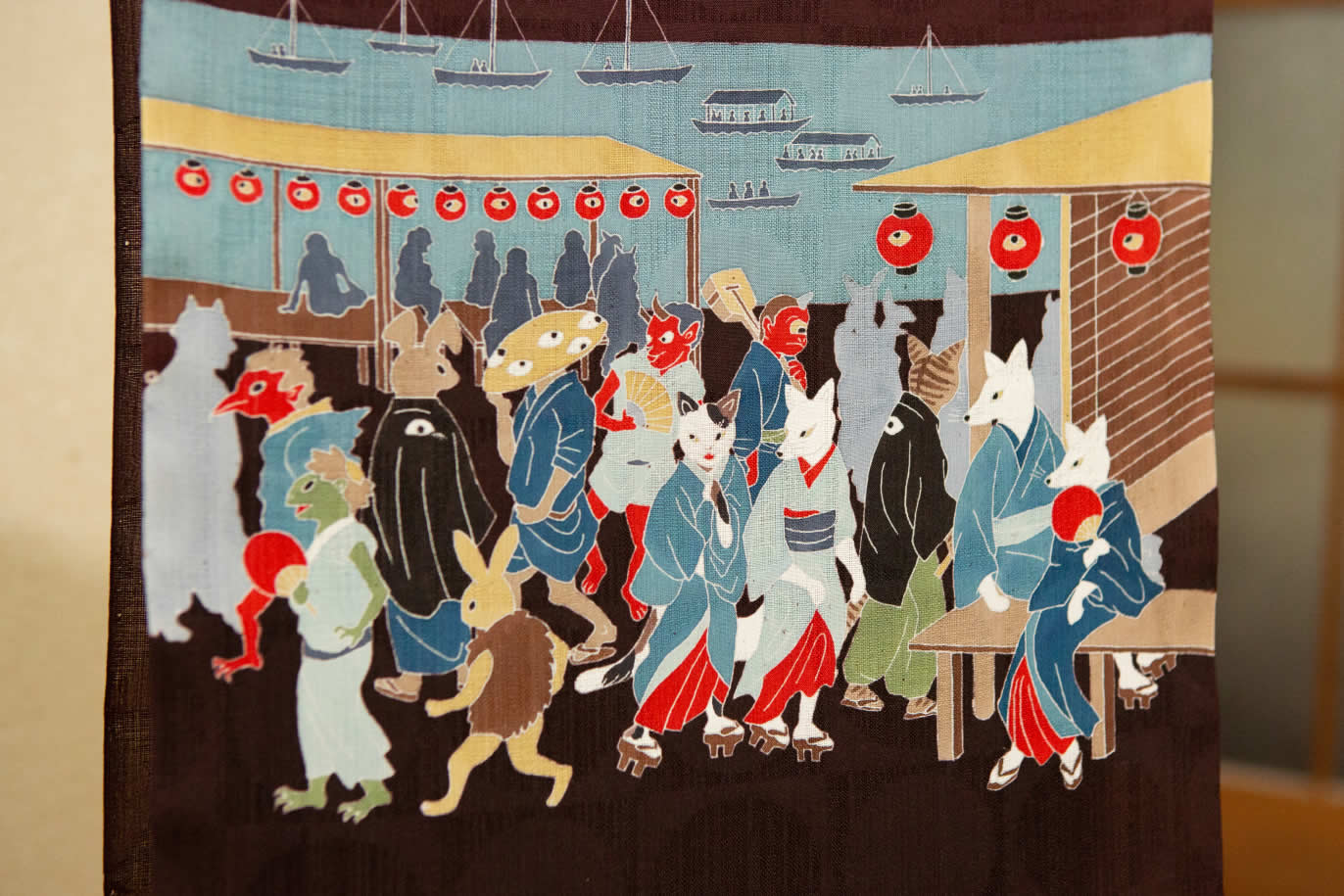 東京友禅作家の大野深雪さんの描く図案は、百鬼夜行を題材にしたものなど、浮世絵のような和風テイストでありながら、現代的な可愛らしさがある。「古典というか昔のものと現代のものとの融合、クロスオーバーするのが好き」美大で建築関係を専攻していたところ、フリーペーパーで紹介されていた友禅作家の記事に心を奪われた。その後、友禅染を学べる場所を探し、専門学校を卒業後、友禅職人に弟子入りする。そして、2017(平成29)年にユキヤ株式会社を立ち上げた。